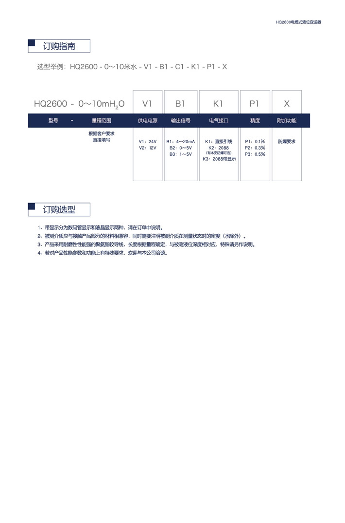 HQ2600电缆式液位变送器